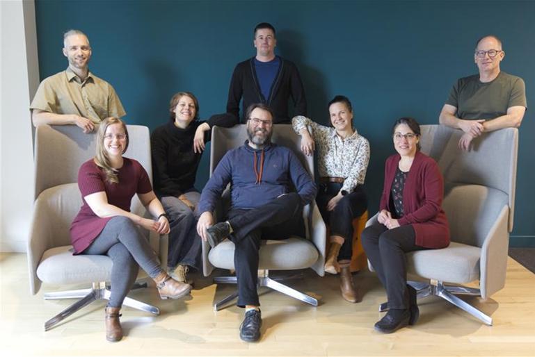 - Quelques membres de l’équipe des analystes et le numéro du plus récent rapport sur lequel ils ont travaillé; de gauche à droite: Jérémie Hagen-Veilleux (no 392), Léa Harvey (no 389), Françoise Quintus (no 389), Charles Drouin-Lavigne (no 393 à venir), Alexandre Bourke (no 389), Émilie Batailler (no 387), Julie Crochetière (no 392) et Jean-François Bergeron (no 388).